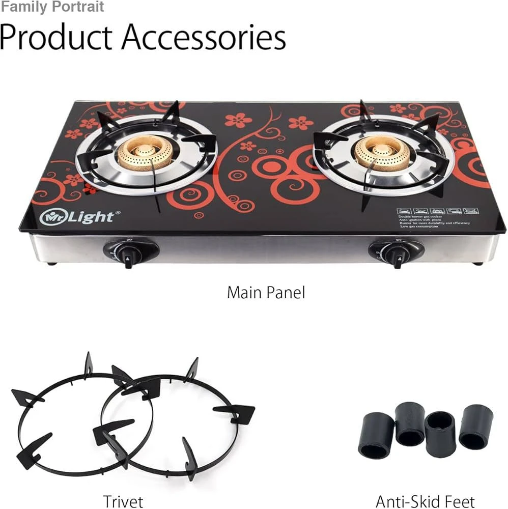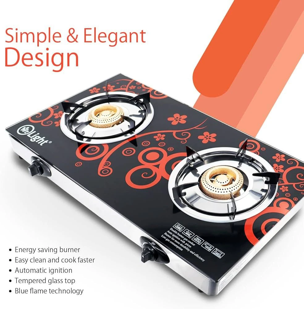 Colour black Material Glass Special features Gas Brand Mr. Light Heating elements 2 Product dimensions 40.2D x 72.5W x 9H centimeters 2 Burner Gas Cooker: A double burner gas cooker is a versatile appliance that can be used for a variety of cooking tasks. It is perfect for small households or apartments, as it takes up less space than a traditional stove Low Gas Consumption: A double burner gas cooker with low gas consumption is a great way to save money on your energy bills. Auto Ignition: A double burner gas cooker with auto ignition is a convenient and easy-to-use appliance. With auto ignition, you can simply turn the knob to start the burner, without having to fumble with matches or lighters Portability: Mr. Light Two-burner gas stoves are designed to be compact and lightweight, making them highly portable. It is easy to transport and storage. Efficiency : Mr. Light's Blue flame burners are highly efficient in converting fuel into heat. The blue flame indicates that the combustion process is optimized, resulting in maximum heat output with minimal waste. |